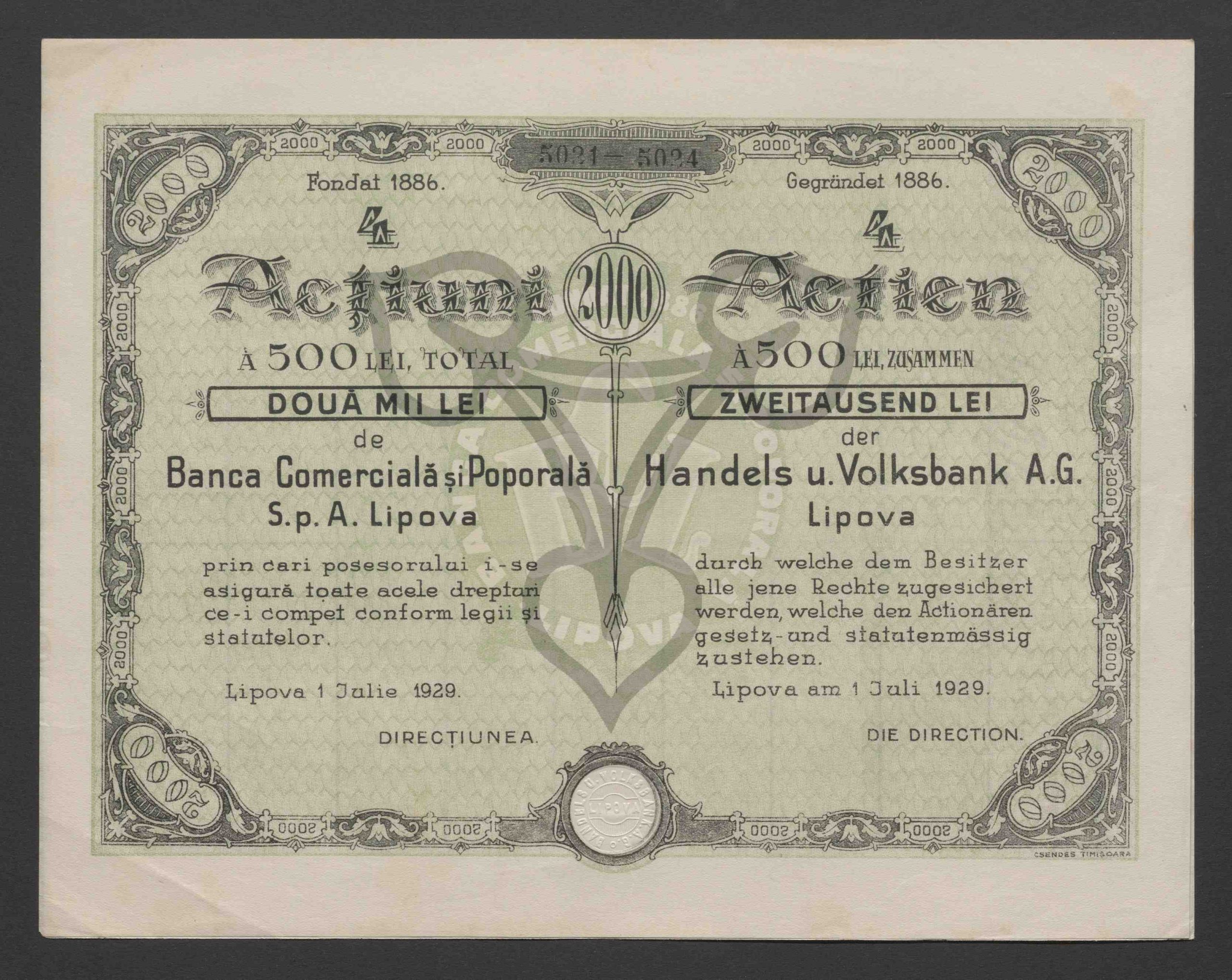 4 Aktien à 500 Lei zusammen Zweitausend Lei. 5031 – 5024