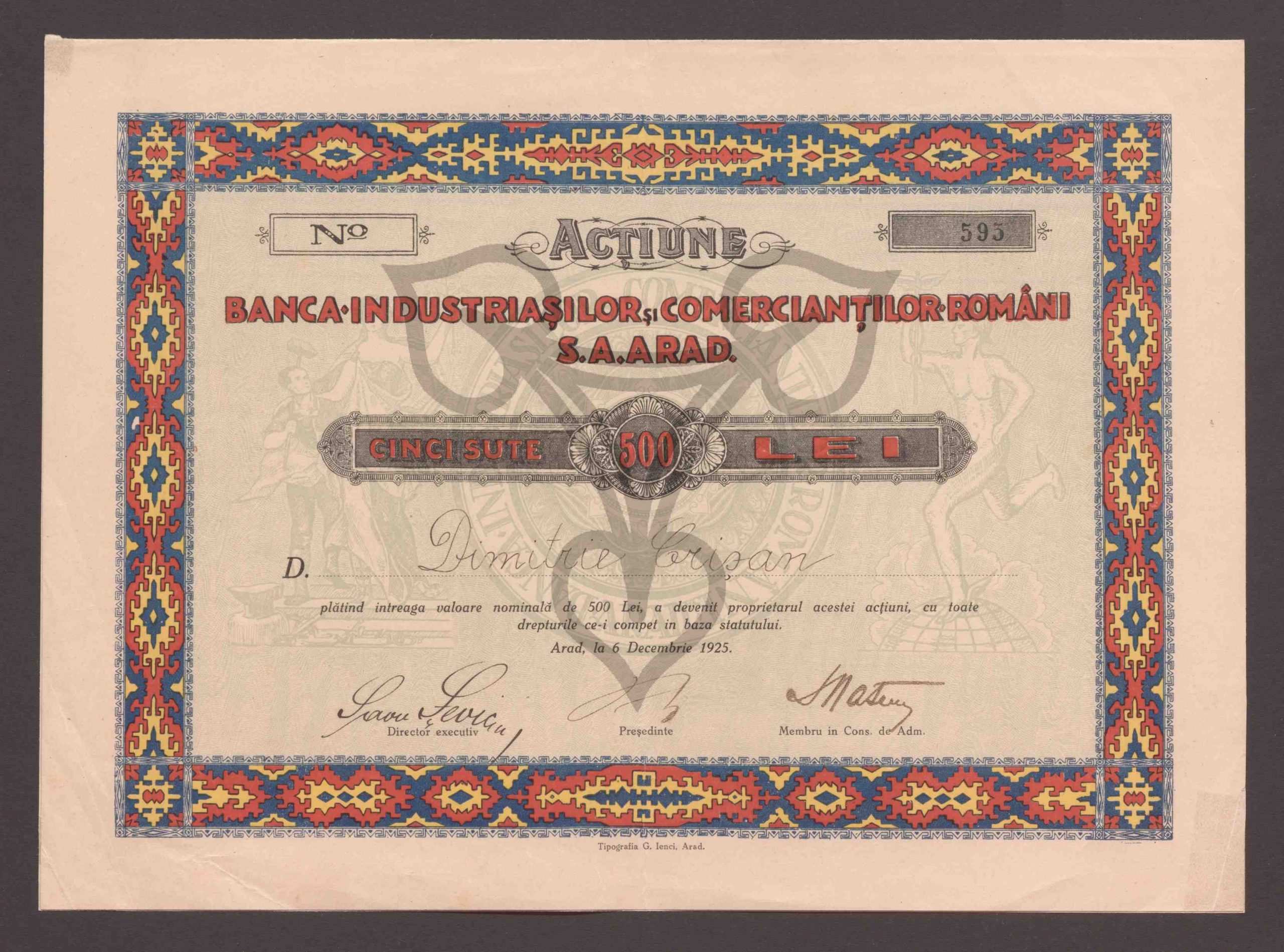 Aktie. Fünfhundert Lei. No. 595