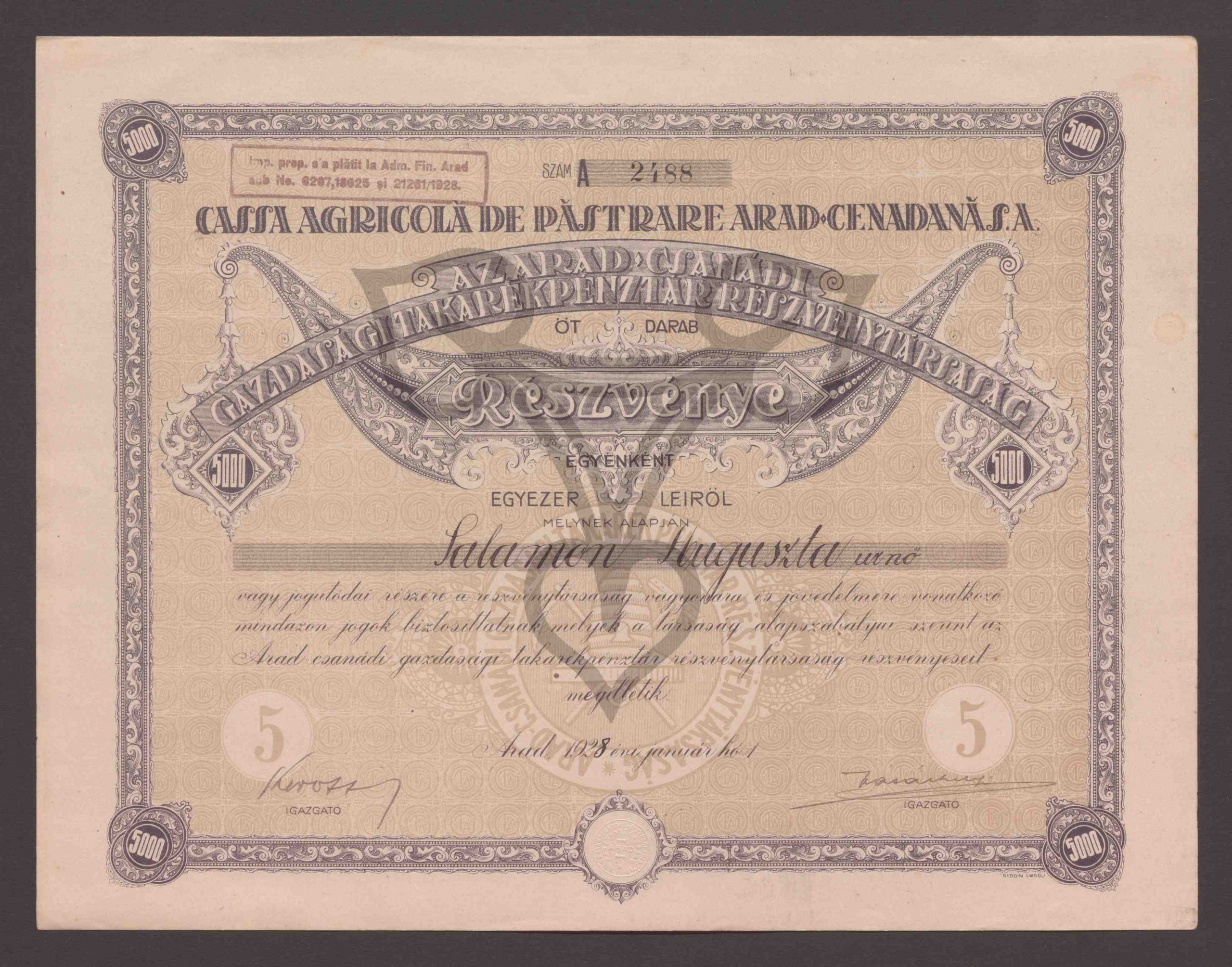 Originaltitel: Részvénye. Egyezer Leiről Öt Darab 5000. Szám 2488