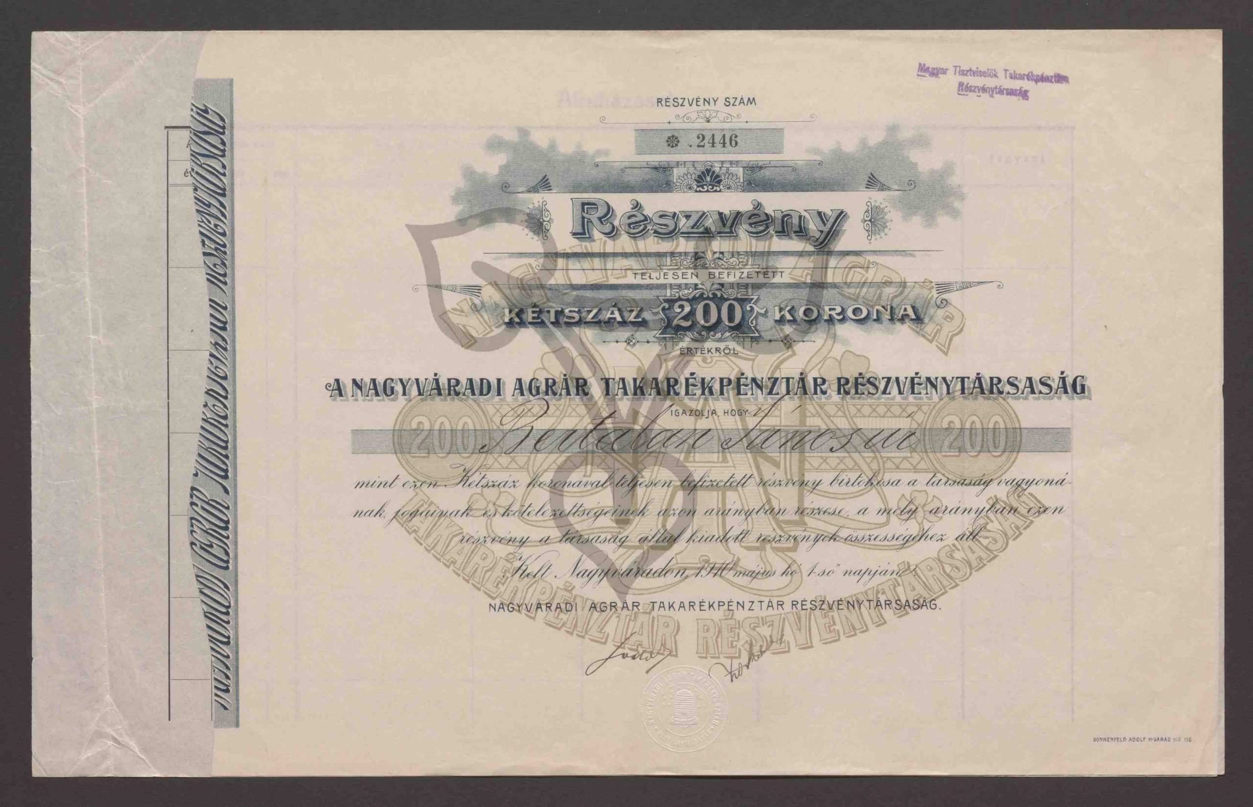 Originaltitel: Részvény. Kétszáz 200 Koronáról. Részvény Szám 2446