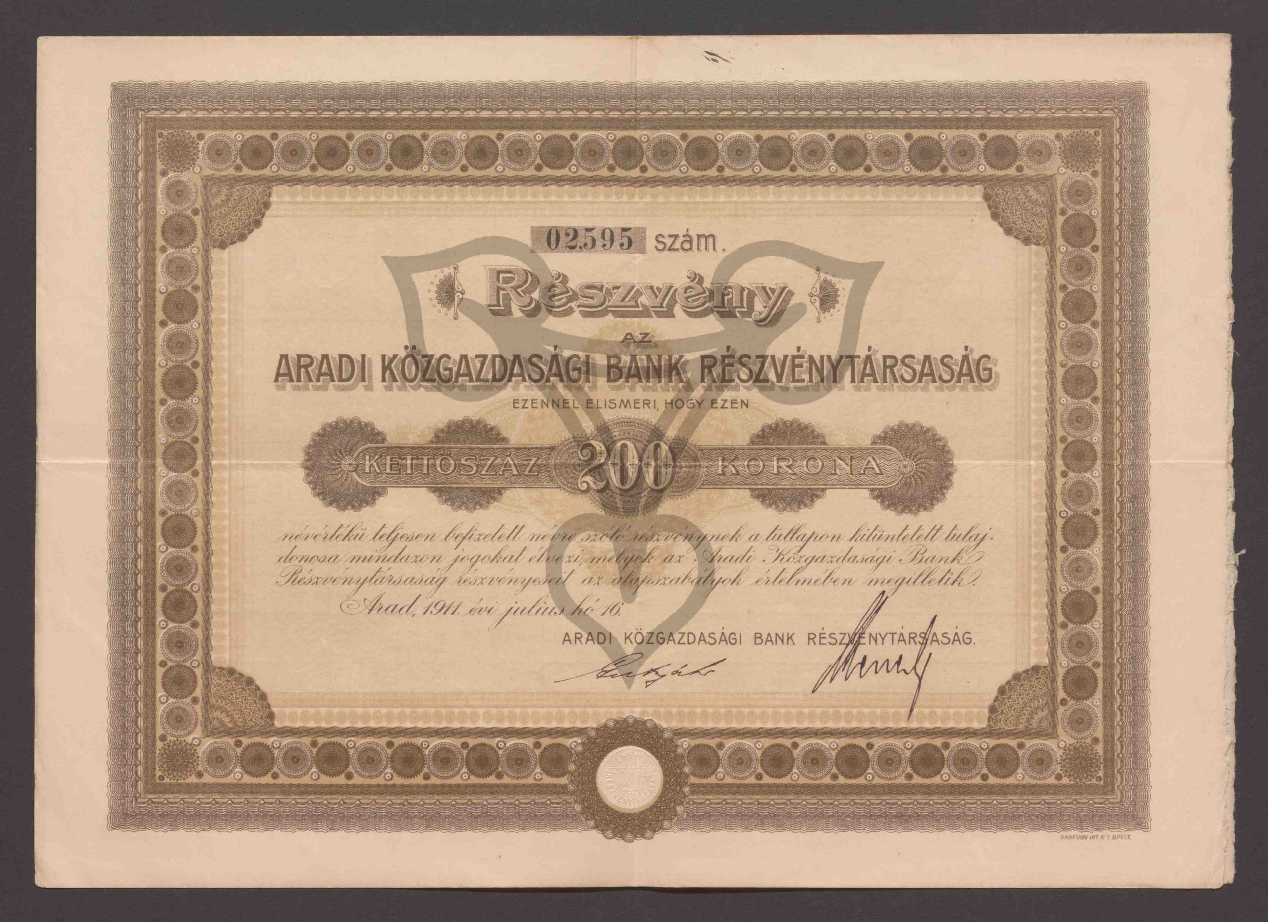 Originaltitel: Részvény. Kettőszaz 200 Korona. 02.595 szám.