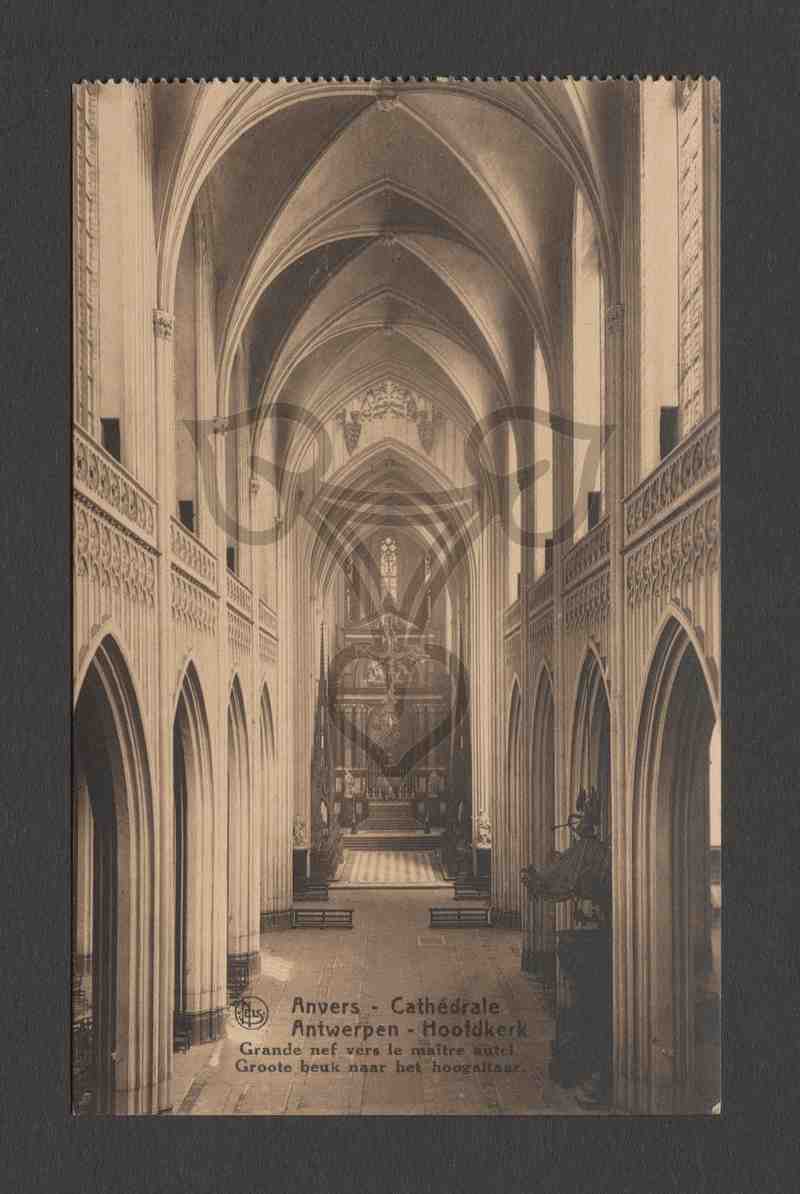 Blick von Westen durch das Hauptschiff auf den Chor mit Altar in der Kathedrale von Antwerpen.