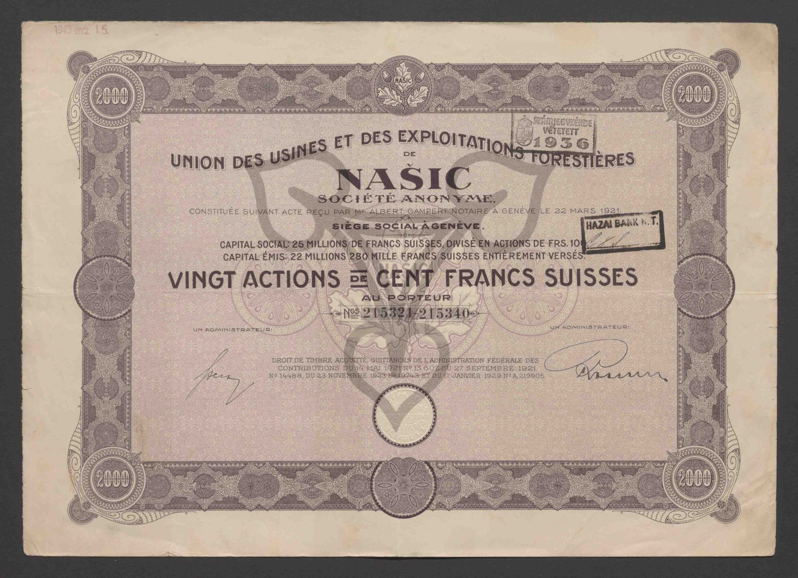 Emittent: Union des Usines et des Exploitations Forestières de Nasic Genève