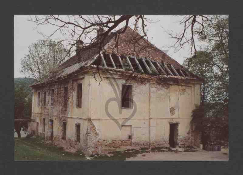 Verlassenen und baufälliges zweigeschossiges Haus vermutlich im Bereich der Kirchenburg. Fenster und Türen fehlen vollständig, Dachstuhl teilweise abgedeckt, abbröckelnder Putz.