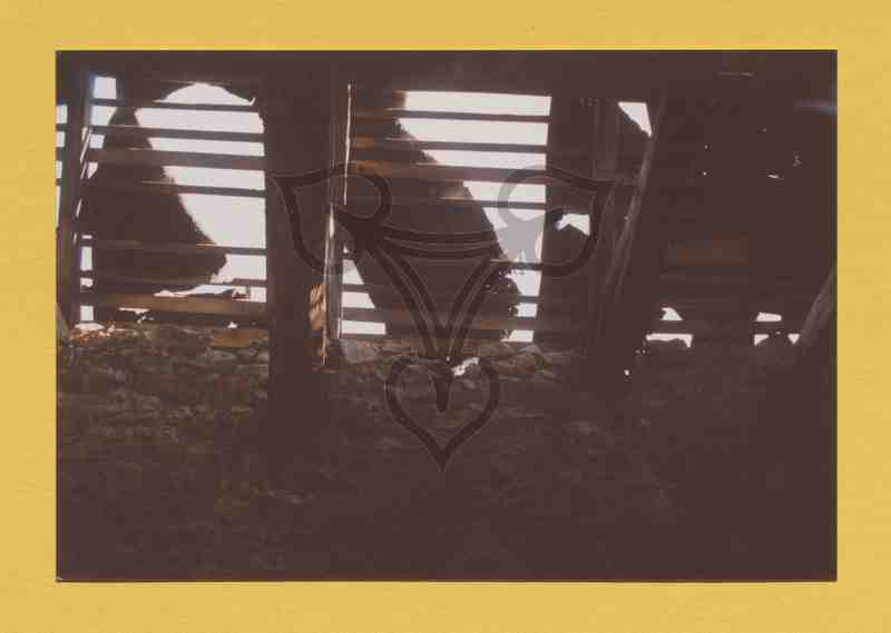 Dachstuhlkonstruktion eines seitlichen Anbaus mit großen Lücken in den Dachschindeln.