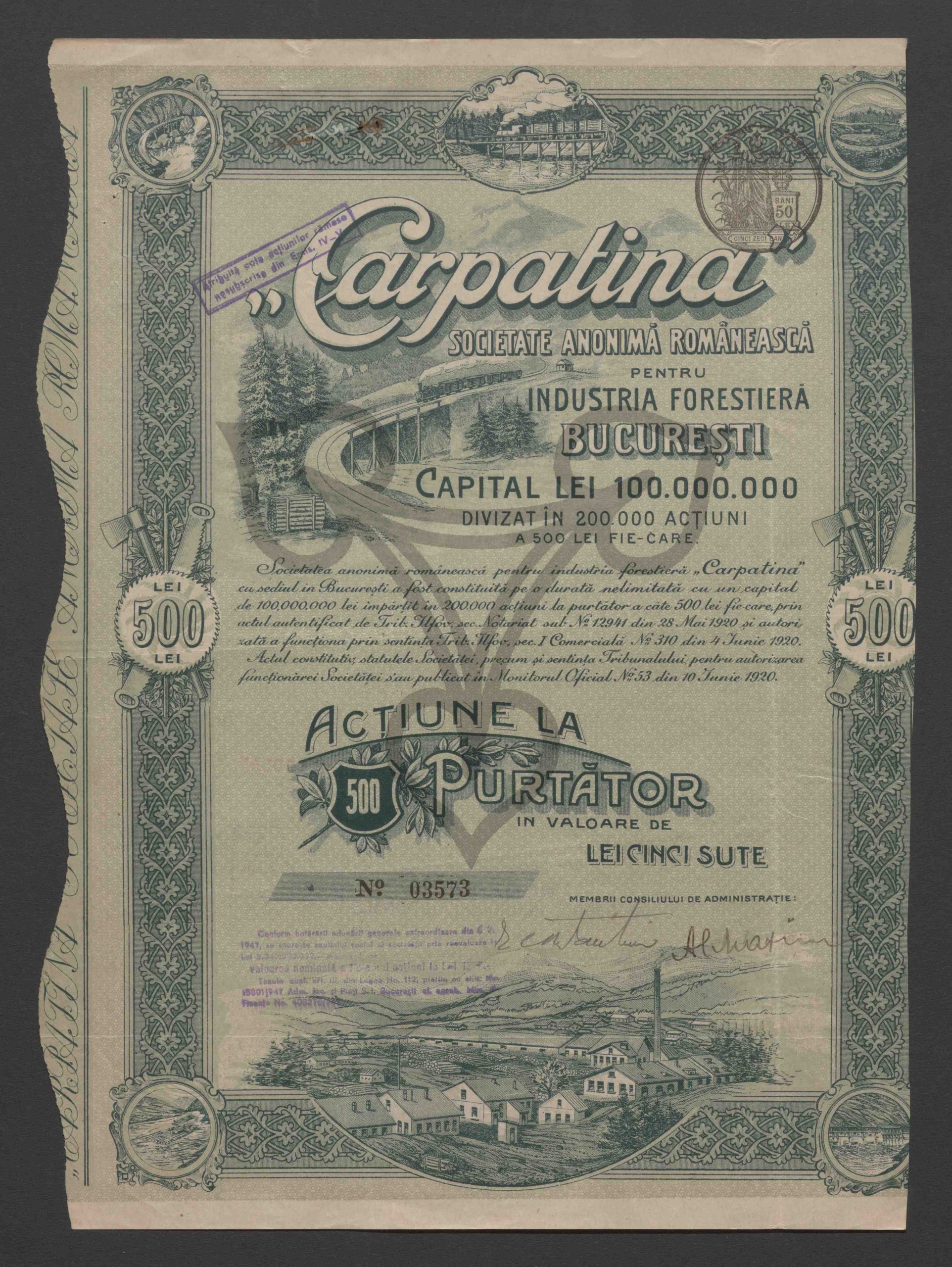 Inhaberaktie im Wert von fünfhundert Lei. Emission IV-V. Nr. 03573