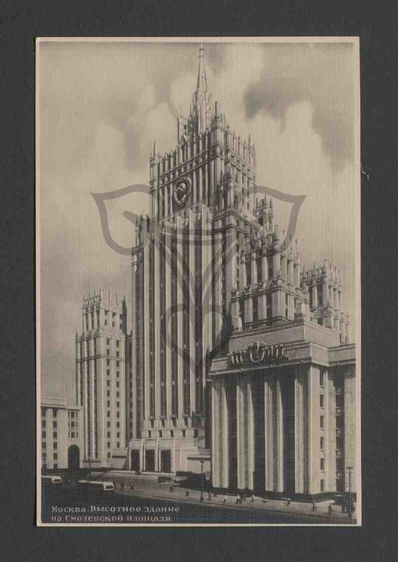 Außenansicht des Hauptgebäudes des russischen Außenministeriums in Moskau. Es ist eines der sieben Moskauer Hochhäuser, die im stalinistischen Stil erbaut wurden und auch als „Sieben Schwestern“ bekannt sind.
