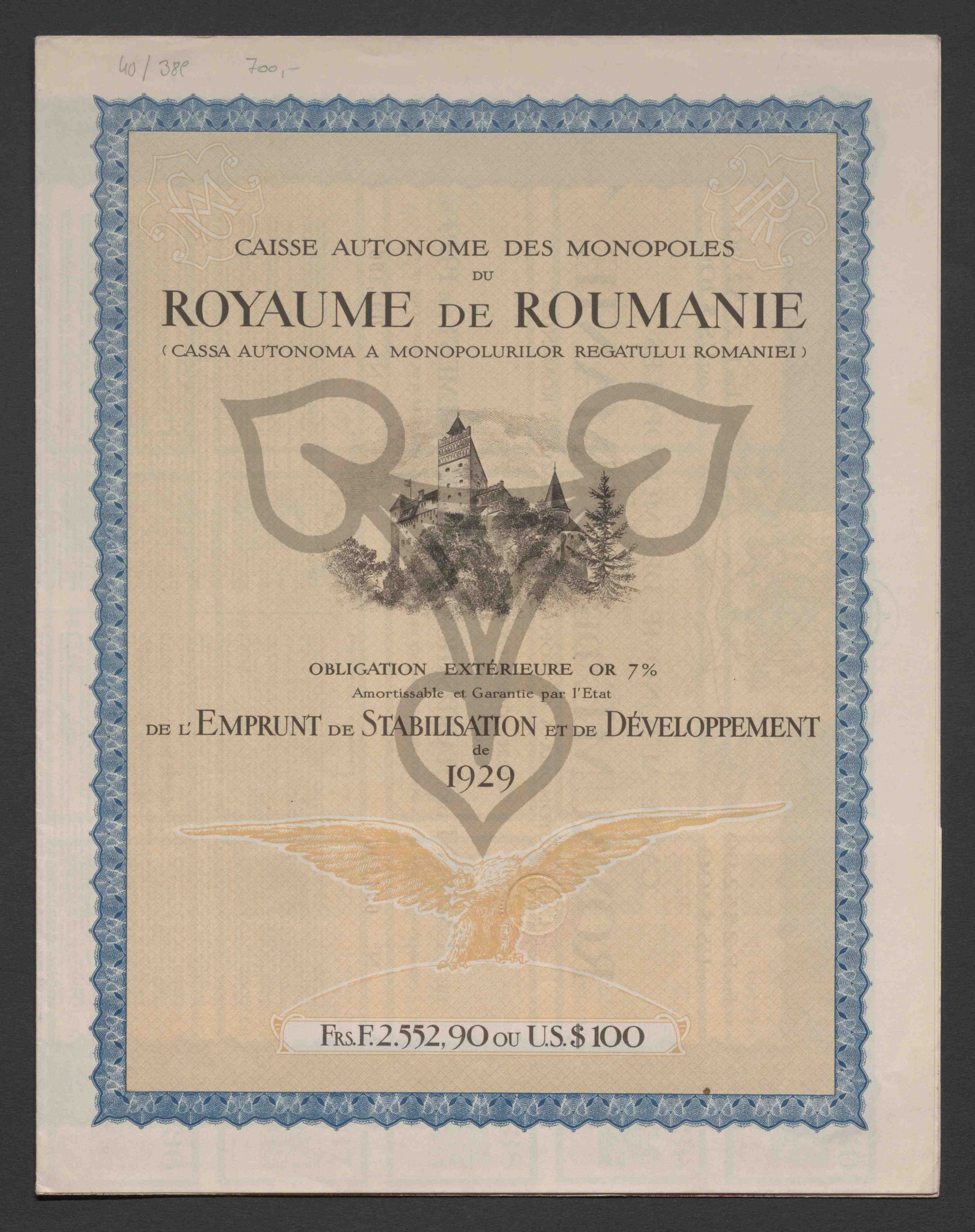 Emittent: Caisse Autonome des Monopoles Royaume de Roumanie
