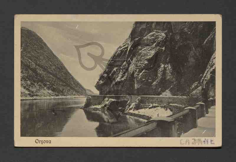 Von der Uferstraße aus ist die Donau beim Eisernen Tor zu sehen. Links und rechts des Flußes verschneite Felswände.