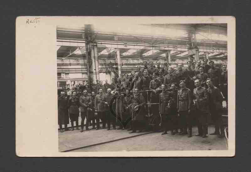 Eine große Gruppe Soldaten steht in einer künstlich beleuchteten Halle.