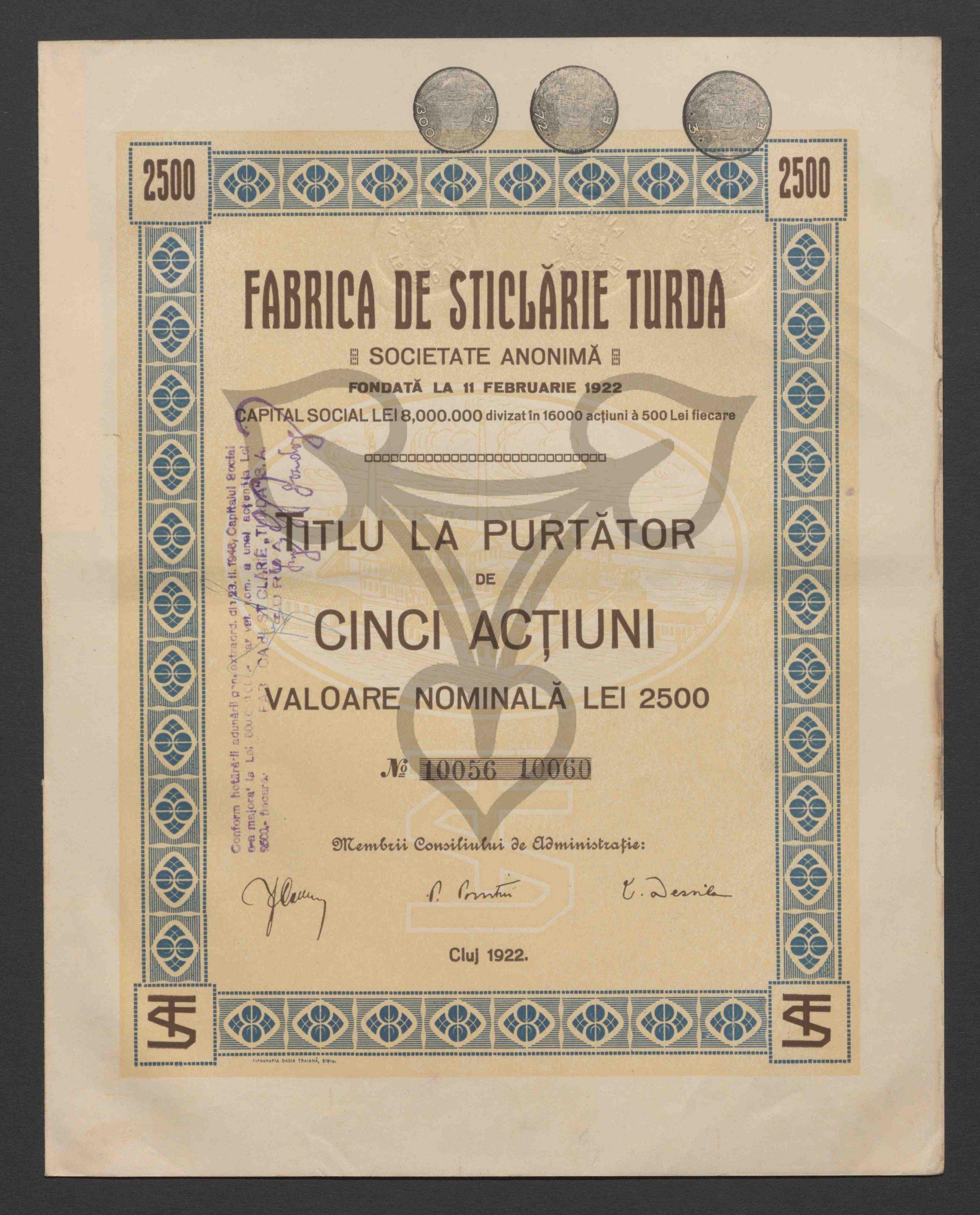Emittent: Fabrica de Sticlărie Turda Societate Anonimă