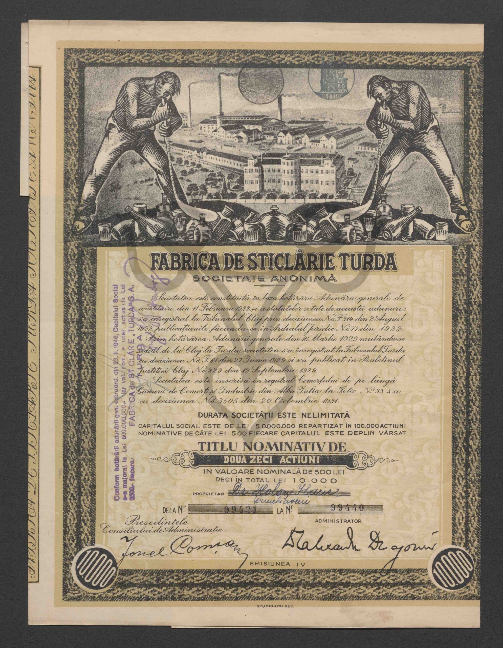 Emittent: Fabrica de Sticlărie Turda Societate Anonimă