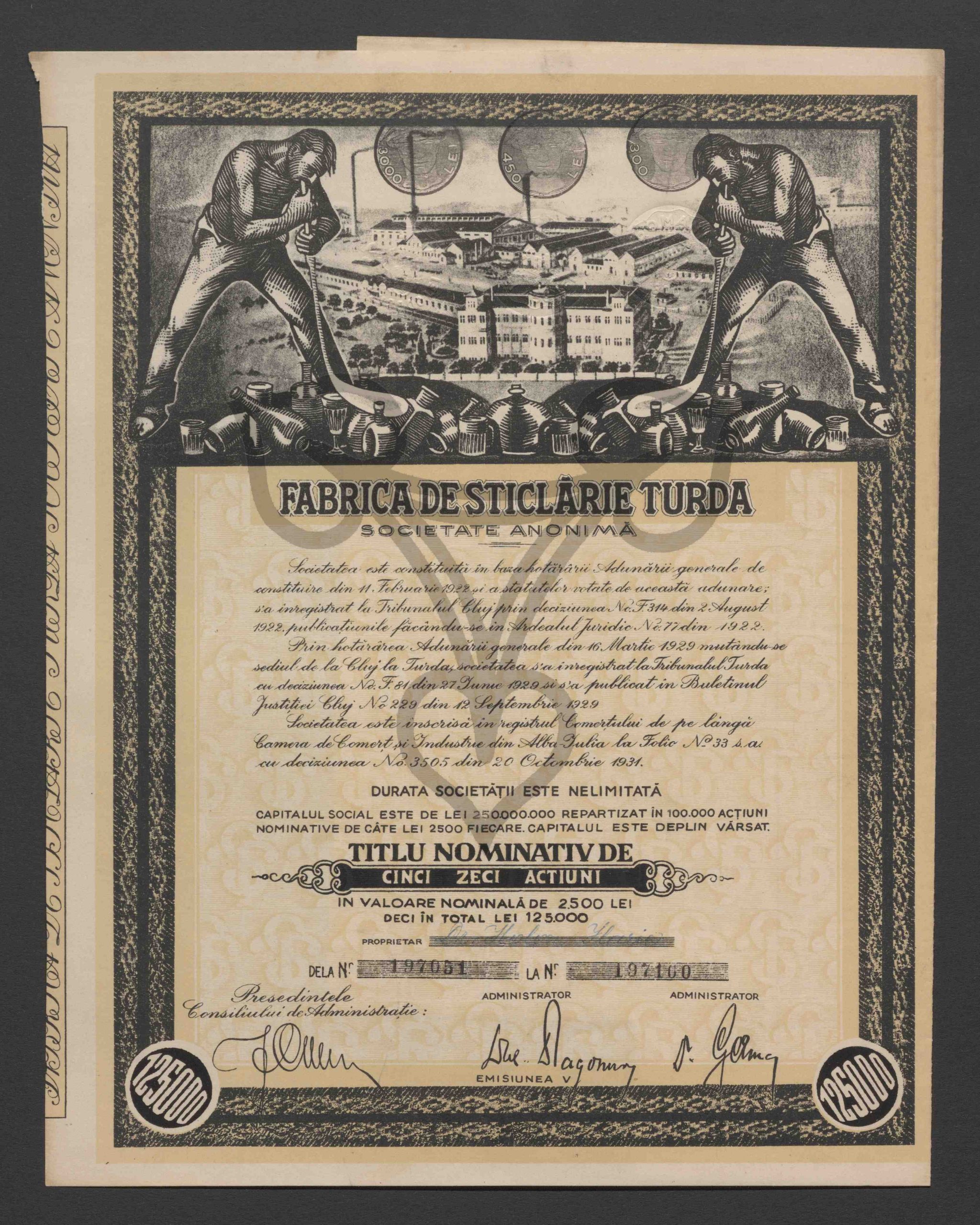 Emittent: Fabrica de Sticlarie Turda Societate Anonimă