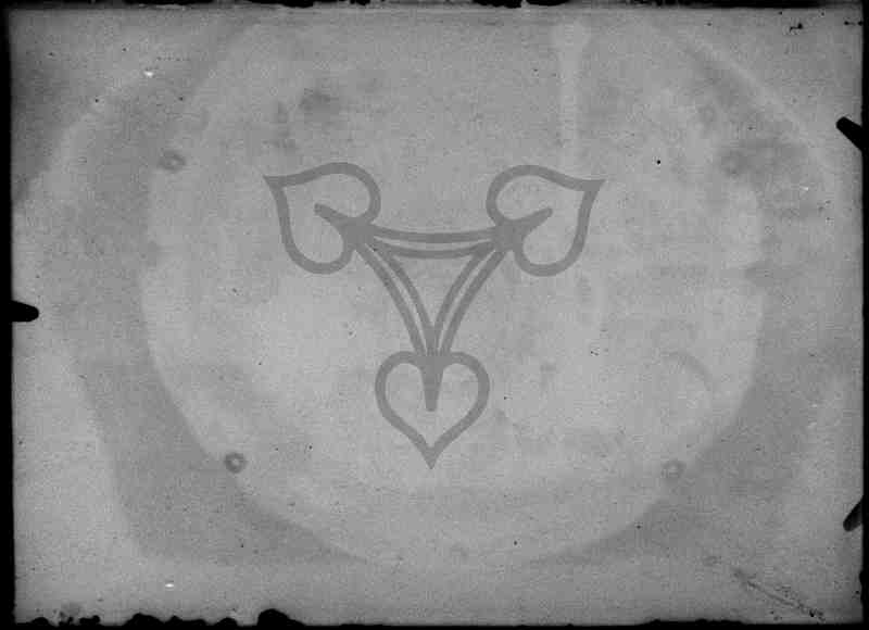Abbildung einer Dreschmaschine. Glasplatte stark überbelichtet.