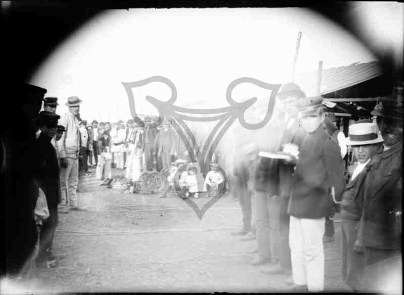 Markttreiben zu Pfingsten in Caracal. Zu erkennen ist eine große Menschenmenge auf der Markt. Im Hintergrund rechts ein Verkaufszelt.