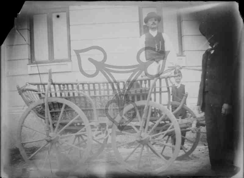 Details: Căruța lui Const. I. Pătru din Dioști. In ea Nicolae Ştefănescu servitorul Gimnaziului. La dreapta umbrit C. I. Pătru (mare). La dreapta, mai mic, un pompier. Mare