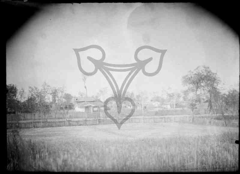 Details: Din mahalaua din Bold. Locuințe de pe linia de pe valea de la Nord, pe coasta de la Nord, văzute din grădina lui Const. Eftimescu (coasta de la Sud. Intre grădină si loc; strada. În grădină orz în vale cosit)