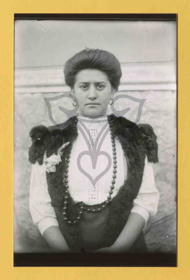 Details: Elisabeta Ion Crăciuneanu, soția sergentului jandarm din Dioști de 27 de ani.De felu-i din Baia de Aramă. Bust, in față, fără pălărie