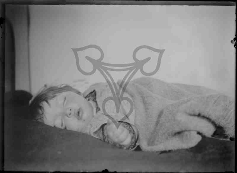Ileana Ilie Constantinescu 1 an si 6 luni, culcată în pat, adormită. Cu fața spre apus (unde e fereastră) in patul lui Elisei
