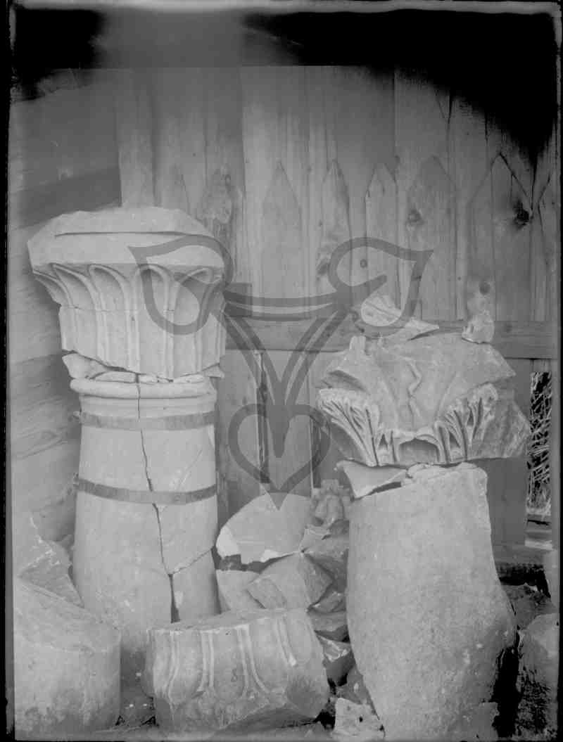 Abbildung zweier in Fragmenten erhaltenen historischen Steinsäulen.