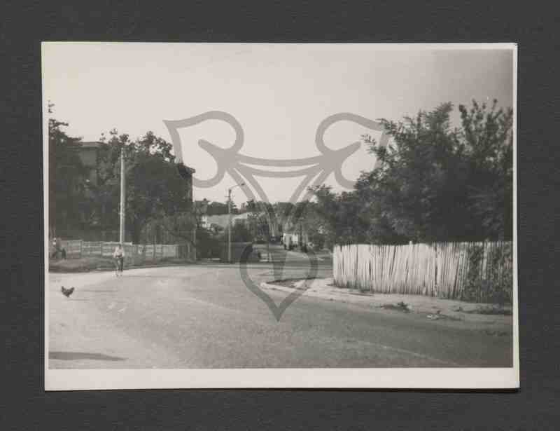 Straßenansicht mit Häuserflucht am linken und rechten Bildrand.