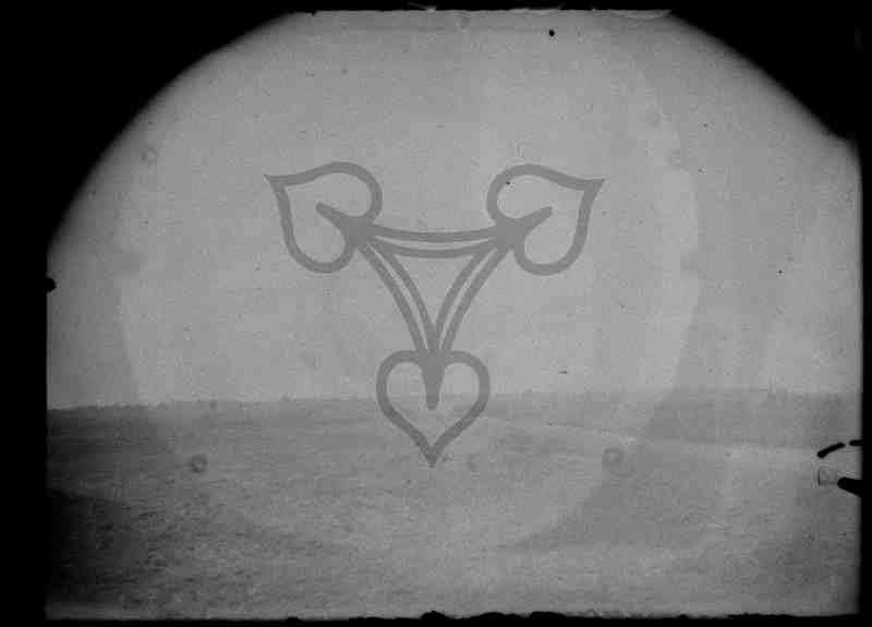 Weiler Grozăvești. Blickrichtung Süden nach Norden, von der Straße Caracal-Craiova aus. Das Dorf liegt vollständig im Hintergrund. Die Bäume im Vordergrund befinden sich im Alește-Tal (Cornet-Tal). Die sichtbare Straße führt von Grozăvești zur Straße Caracal-Craiova. Glasplatte stark überbelichtet.