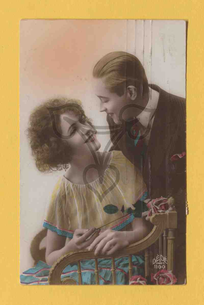 Hingebungsvolles Paar. In der unteren linken Ecke das Signet des Verlages: Dèdé Paris 1100.