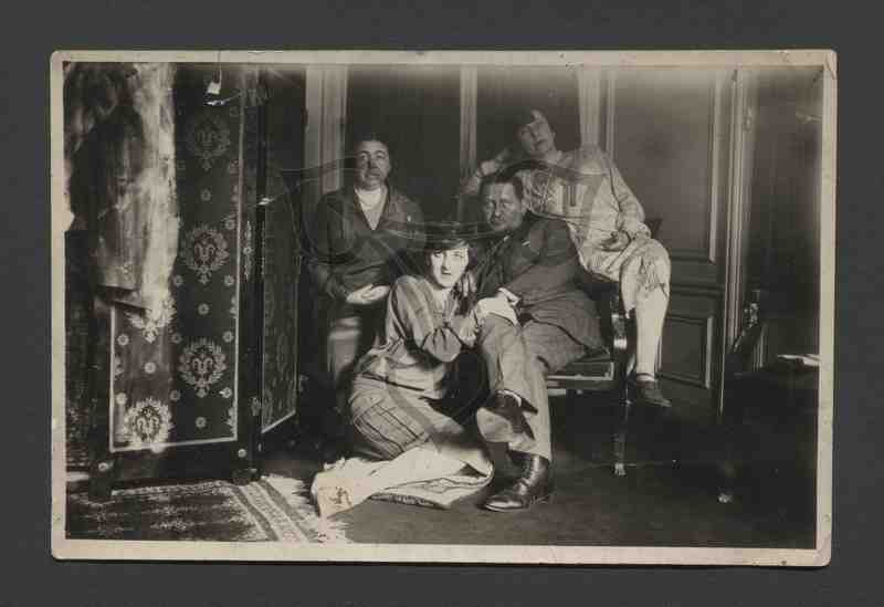 In einem Raum sitzen rechts eines am linken Bildrand stehenden Paravents Vermonts Frau und er selbst auf zwei nebeneinander stehenden Stühlen. Eine weitere Frau sitzt auf der Armlehne von Vermonts Stuhl und stützt sich mit ihrem rechten Arm auf der Rückenlehne ab. Eine vierte Frau sitzt zu Füßen des Paares und hat ihre rechte Hand auf Vermonts Knie gelegt. Alle vier blicken in die Kamera.