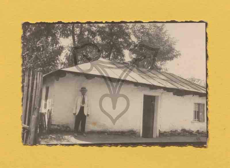 Der Mann in schwarzer Hose, weißem Hemd, Jacke und Strohhut steht vor der weiß getünchten Wand eines kleinen Gebäudes.
