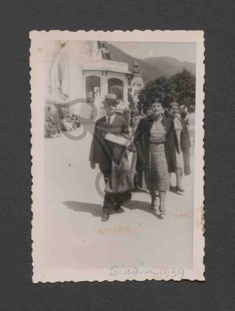 Das Paar, der Mann links, die Frau rechts, geht auf einer Promenade auf die Kamera zu. Hinter den beiden weitere Personen, überwiegend Frauen. Im Hintergrund links ein Gebäude, rechts eine Parkanlage.