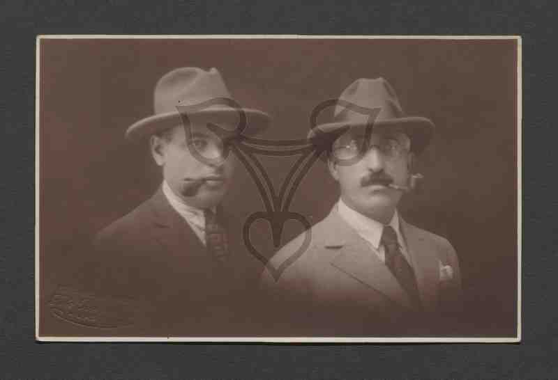 Studioaufnahme, neutraler Hintergrund. Halbbrustporträt. In der unteren linken Ecke der Prägestempel des Fotografen.